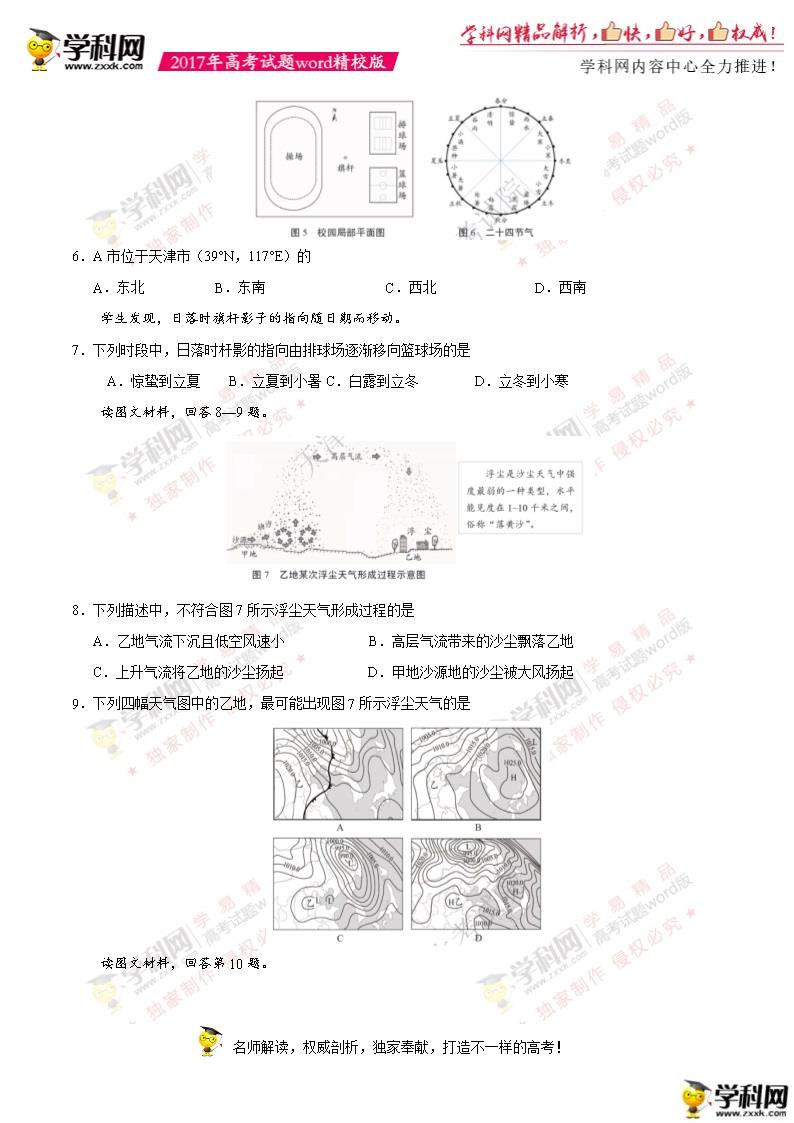 2017年天津高考文綜真題及答案(3)