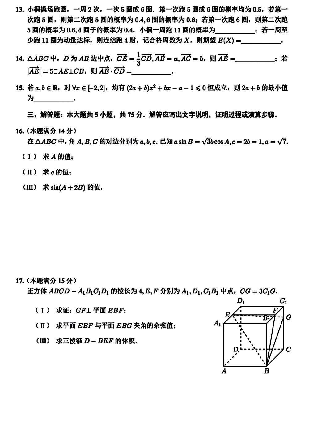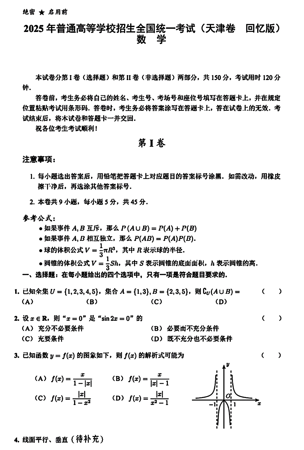 2025年天津高考數(shù)學答案及試卷真題考后更新完整版答案