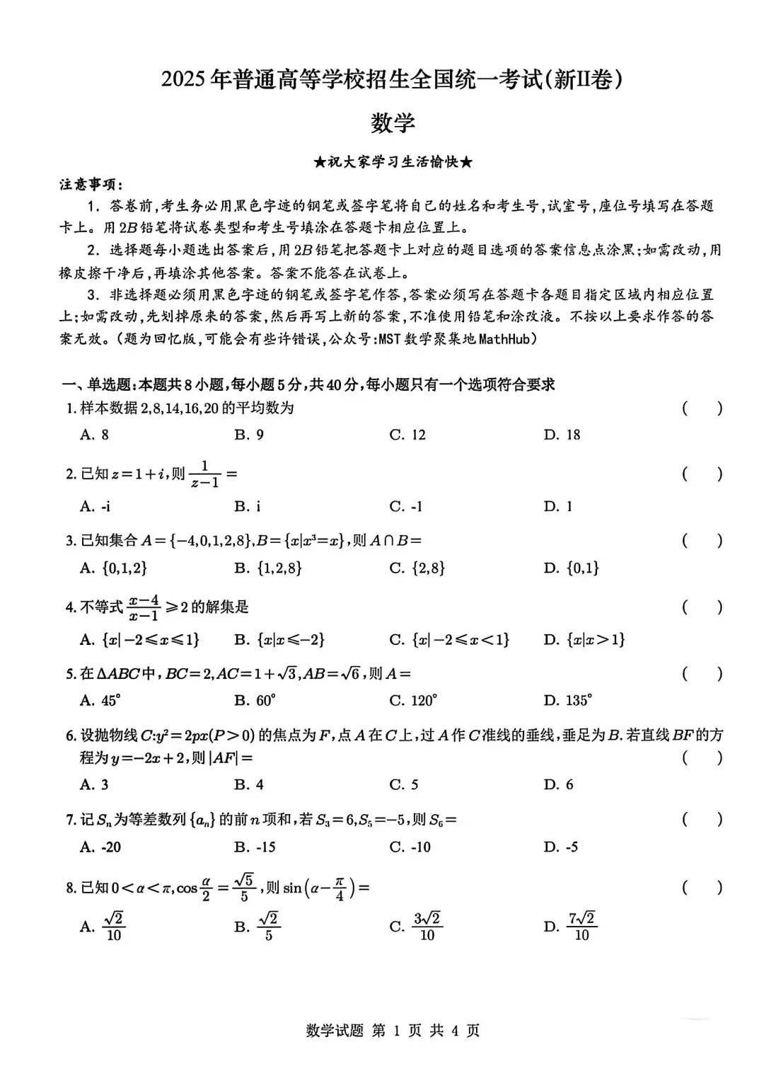 二、2025年海南新高考二卷數(shù)學(xué)試卷真題及答案解析