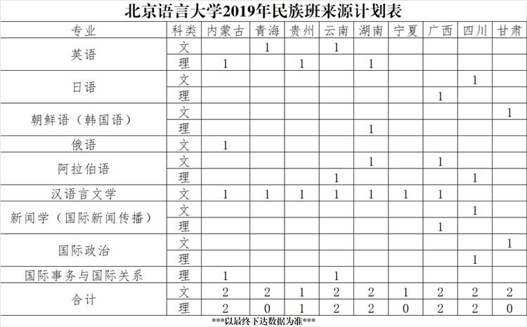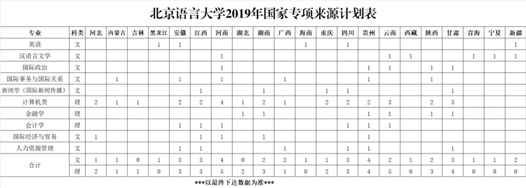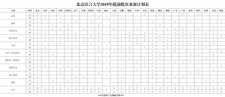 北京市2019年北京語言大學(xué)招生來源計(jì)劃匯總表