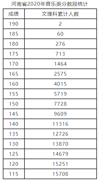 2020年河南省藝術類分數(shù)段統(tǒng)計表