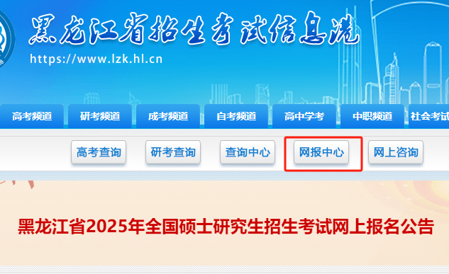 考生也可登錄此網(wǎng)站,進(jìn)入“網(wǎng)報(bào)中心”,同樣點(diǎn)擊“黑龍江省普通高校招生全國(guó)統(tǒng)一考試報(bào)名入口”進(jìn)行報(bào)名。