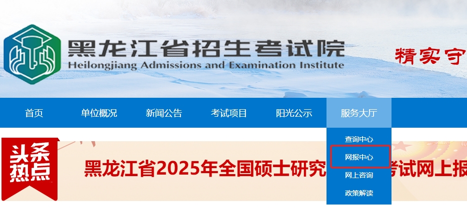 考生可登錄此網(wǎng)站,進(jìn)入“服務(wù)大廳”項(xiàng)下的“網(wǎng)報(bào)中心”,點(diǎn)擊“2025 年黑龍江省普通高校招生全國(guó)統(tǒng)一考試報(bào)名入口”進(jìn)行報(bào)名。