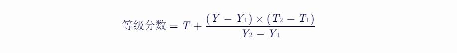 等級(jí)賦分的計(jì)算采用等比例轉(zhuǎn)換方法,具體公式如下: