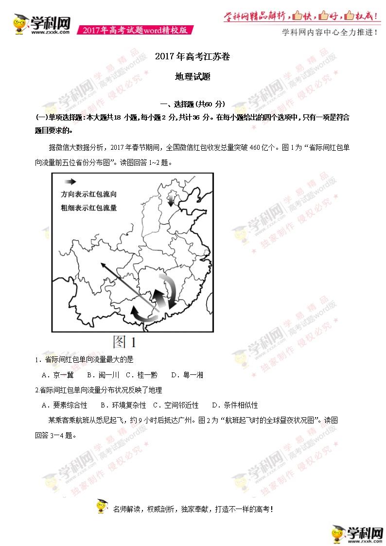 2017年江蘇高考地理真題及答案由育路高考網(wǎng)考后首發(fā),更多關(guān)于江蘇高考答案、江蘇高考試題等信息,請關(guān)注育路高考網(wǎng)或微信搜索“育路高考招生網(wǎng)”獲取。