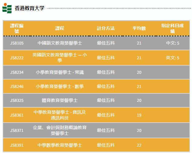 從上圖統計的香港八所大學錄取分數線看,這八所大學采用了不同的計分方法,其中香港大學、中文大學、科技大學、理工大學會視「5**」為8.5分,而城市大學、浸會大學、教育大學等則只有7分(見下圖)。因為計分方法的不同,所以學校間的分數線不同。