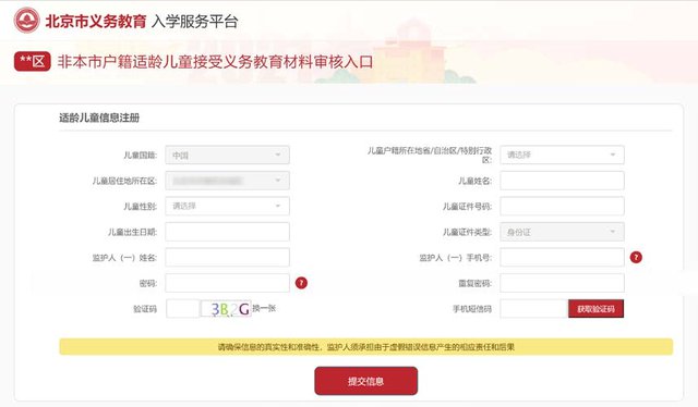 1.帶紅色“*”的為必填項(xiàng); 2.注冊(cè)的基本信息不能修改; 3.為避免誤操作,請(qǐng)先咨詢(xún)?nèi)雽W(xué)所在區(qū)教委。