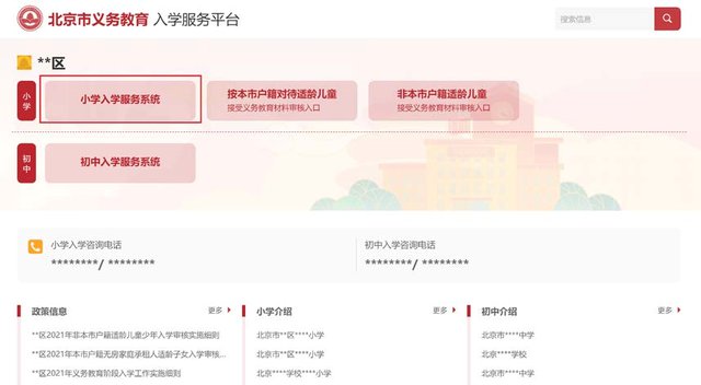 2.打開(kāi)新頁(yè)面后,點(diǎn)擊選擇“小學(xué)入學(xué)服務(wù)系統(tǒng)”。